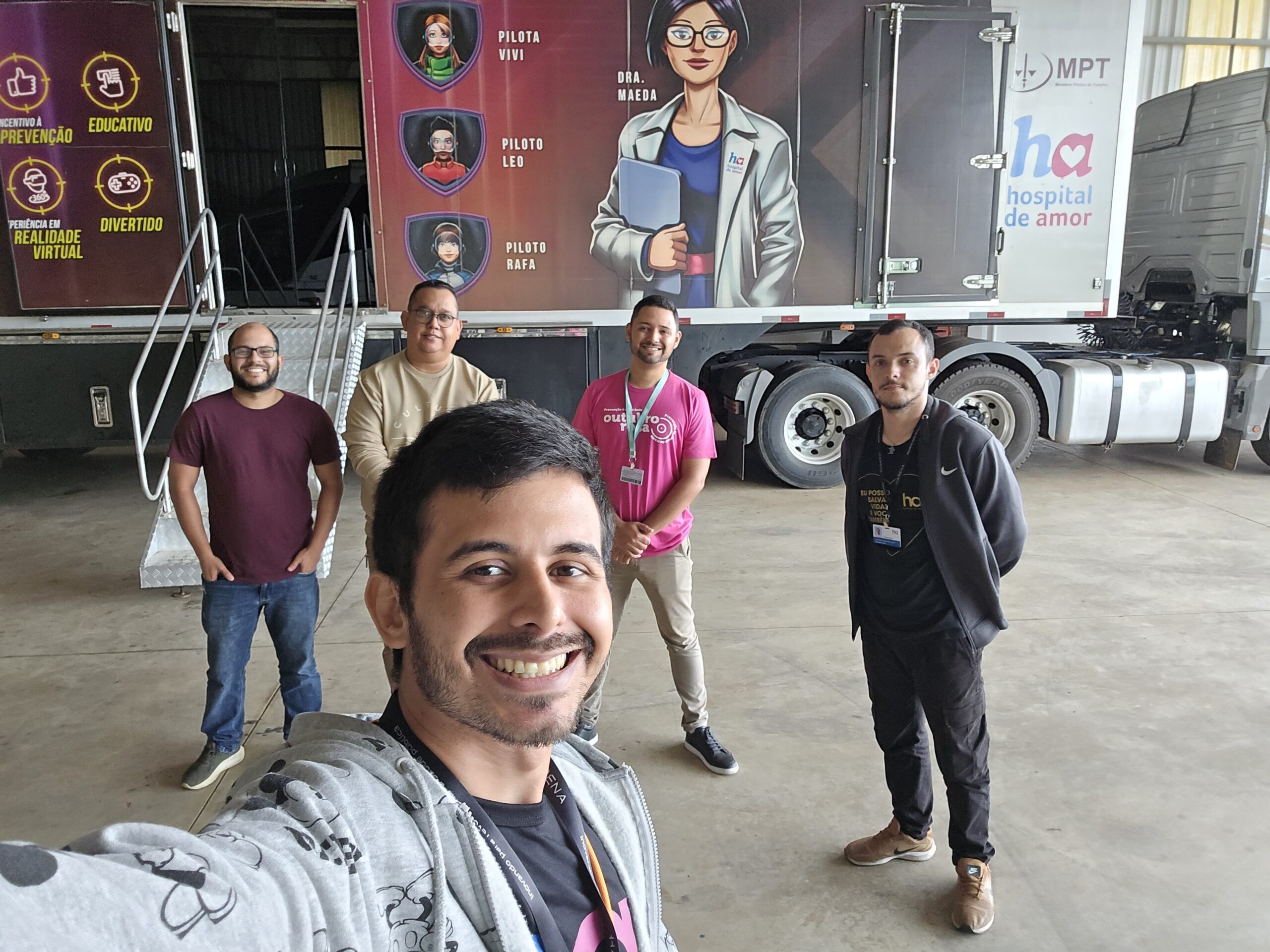 Estiveram presentes Anderson Melo, Chefe do Departamento de Inovações Educacionais e Mídias Digitais, e Matheus Alexandre, Chefe da Divisão de Tecnologias Educacionais. Eles conheceram de perto o novo projeto da Liga: uma carreta lúdica, tecnológica e gamificada, que tem como objetivo levar a cultura do autocuidado e a prevenção primária e secundária do câncer diretamente para as escolas estaduais.