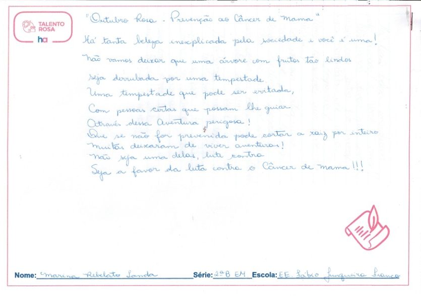 No dia 19 de outubro, em que se comemora o dia mundial da luta contra o câncer de mama, todos estão convidados a compartilharem desenhos, vídeos e fotos de suas escolas, famílias e comunidade utilizando a #TalentoRosa2025.